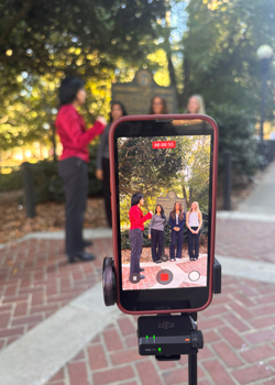 The students also stepped behind the scenes of a video shoot with on-screen talent Ava (past intern and UGA alum) and videographer Ben (recent UGA grad), observing setup and the first takes.